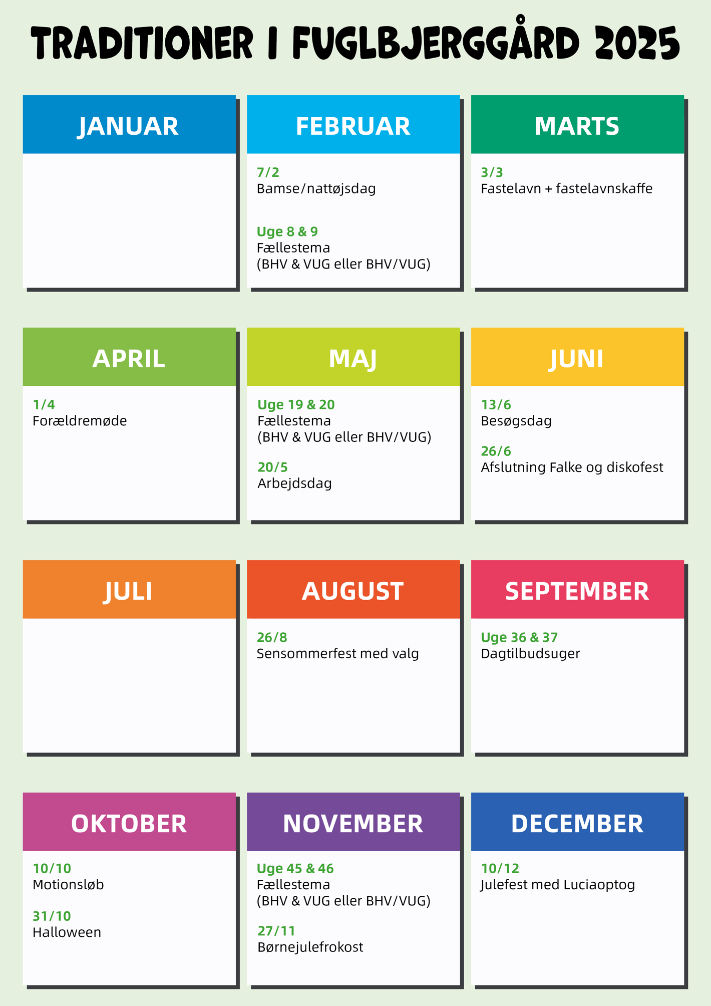 Det er vigtigt for os, at alle børn og voksne har gode dage i Fuglbjerggård. Gode dage med plads til nærvær, omsorg og øjeblikke hvor alle børn bliver set, hørt, mødt og anerkendt.