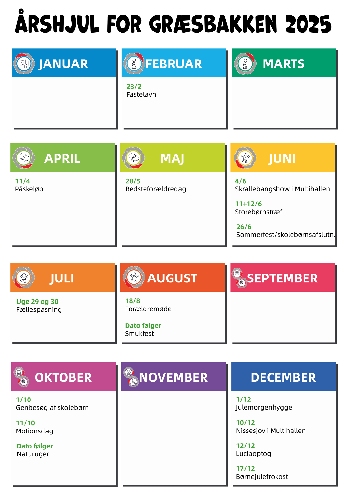Vi støtter op om ledelsens mål om at skabe mere struktur, og oplever, at det allerede sker, og at Græsbakken udvikler sig i en positiv retning. Vi oplever altid åben dialog og en velvillighed overfor input og aktiviteter. Desuden ligger det forældrerådet meget på sinde, at der skabes fælles arrangementer, og dette vil fremadrettet være et fokuspunkt.